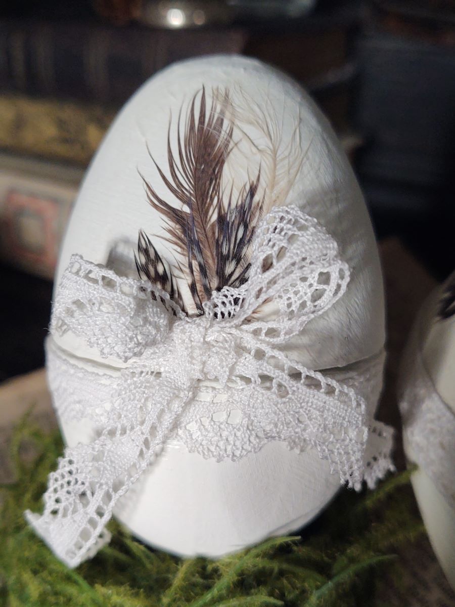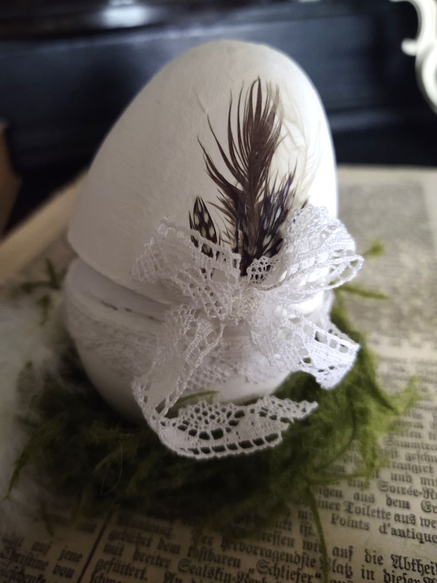 Ei im Shabby-Vintage-Stil! Das Ei ist quer teilbar (über der Spitze) und eignet sich hervorragend z. B. als Verpackung für kleine Geschenke.