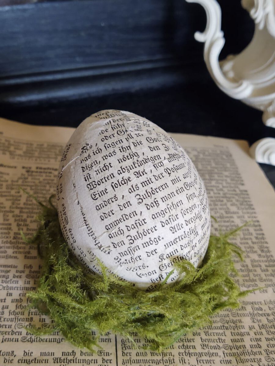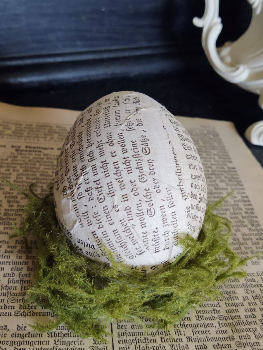 Mit alten Buchseiten verziertes Ei im Shabby-Vintage-Stil!